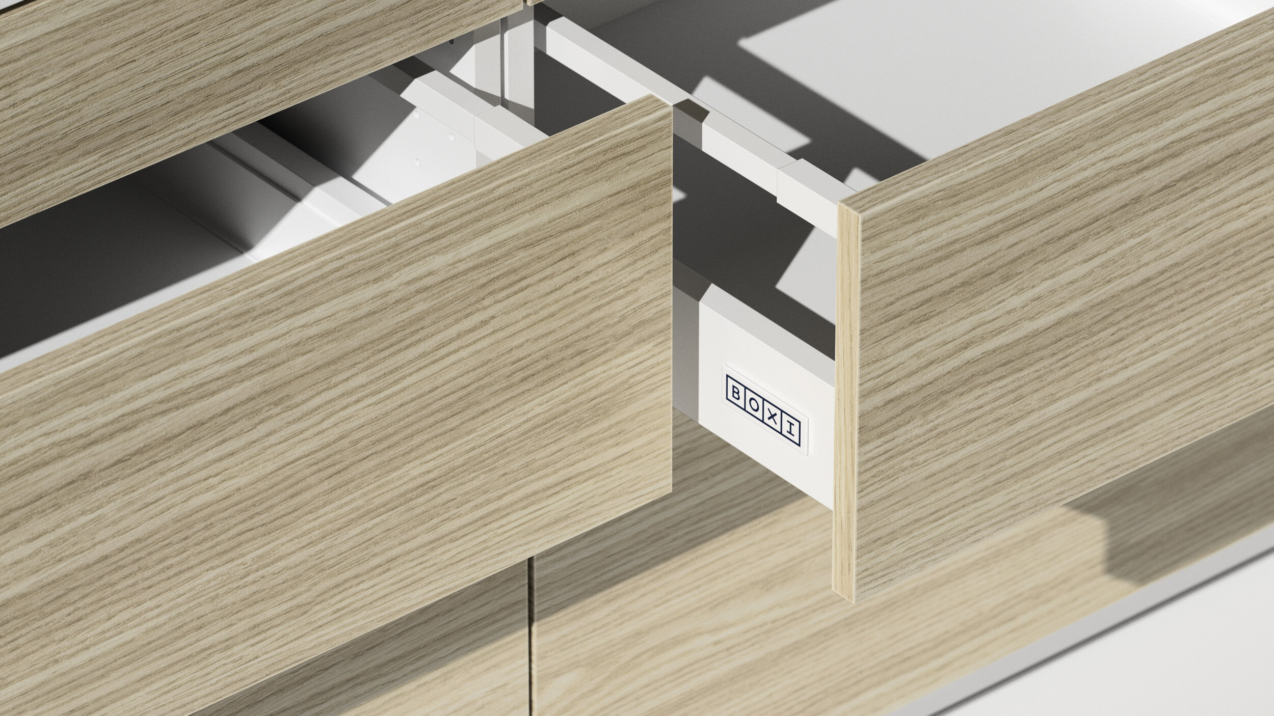 Our industrial design team needed to take products that exist in the market already—drawer organizers, shelves, hooks, and cushions—and elevate them to align with the upscale BOXI brand promise. To create a certain aesthetic, the materials needed to be refined; the fit needed to be exact. We designed a system of organizers that are custom to the various drawers they go in so there’s no sliding around or empty space. The other accessories work hard to maximize the storage and usability in the kitchen, bathroom, and closets so homeowners can benefit fully in the spaces they use the most.