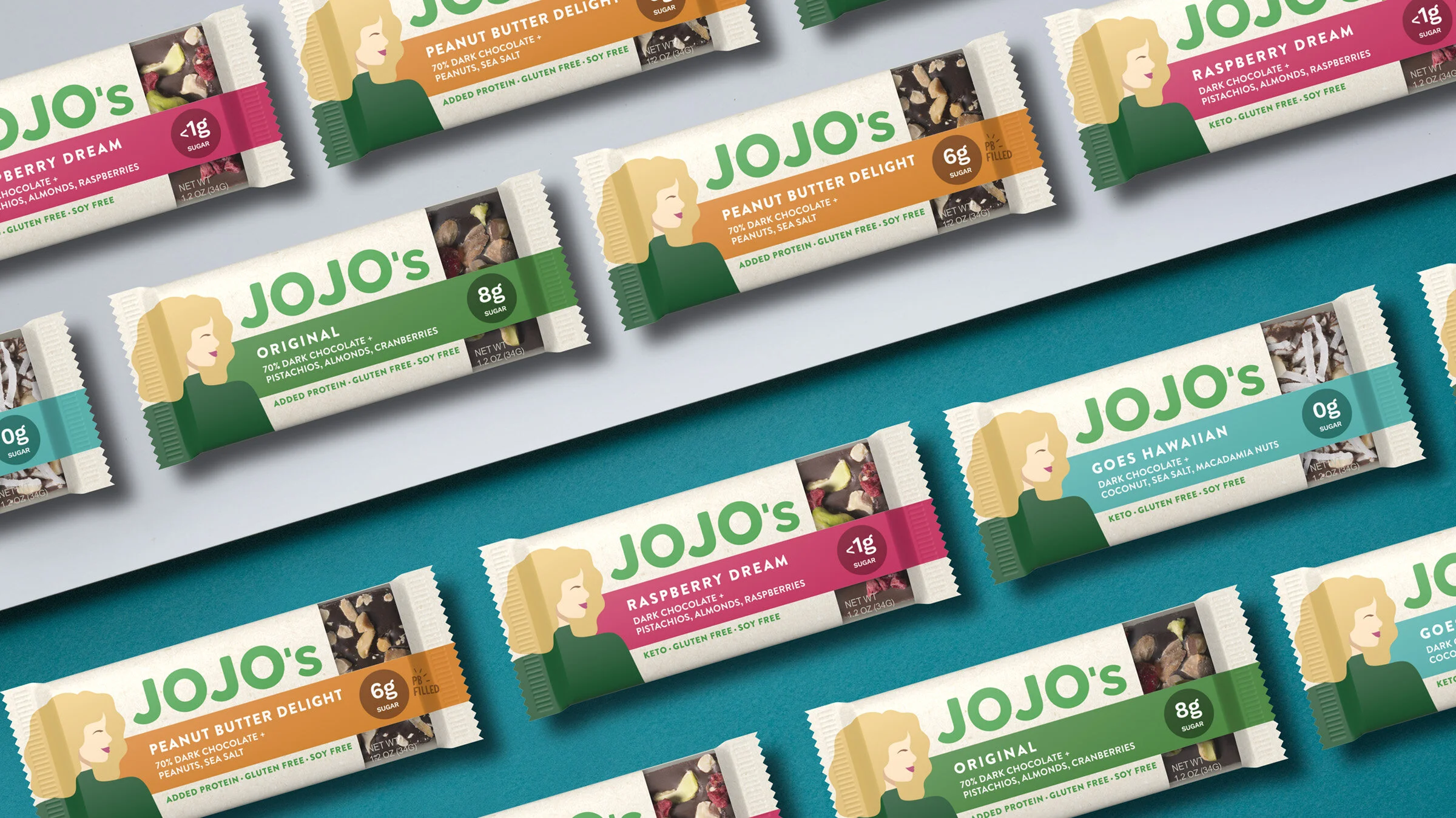 Enlisted was able to bring Jojo’s heartwarming personality to the brand with the illustrated mascot and detailed product photography. The typography and graphic elements provide nutritional information without being stuffy or medicinal, lending a playfulness to the brand that JoJo would have loved. Her legacy and passion for chocolate lives on through not only the brand, but through the delicious chocolate.