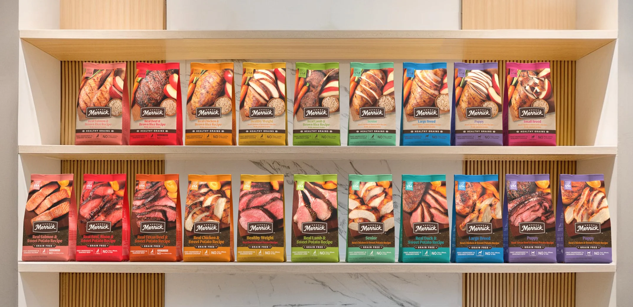 Launched to a warm reception at the pet industry’s largest trade show in March 2024, Merrick is set to continue to roll out its refreshed packaging throughout the Spring of 2024. Where real is their recipe, Merrick continues to be the brand pet parents look to… and the food in packaging their dogs crave.