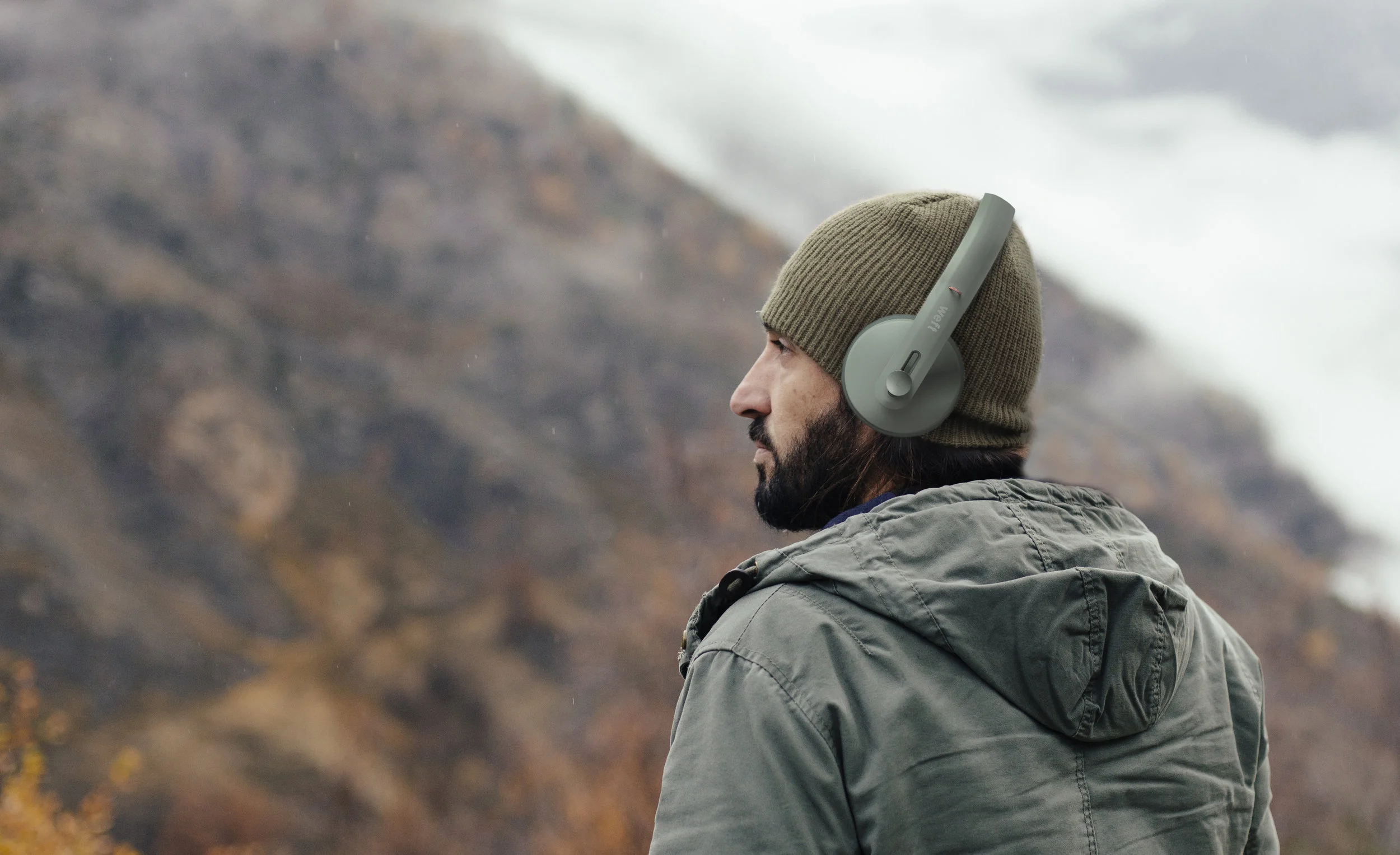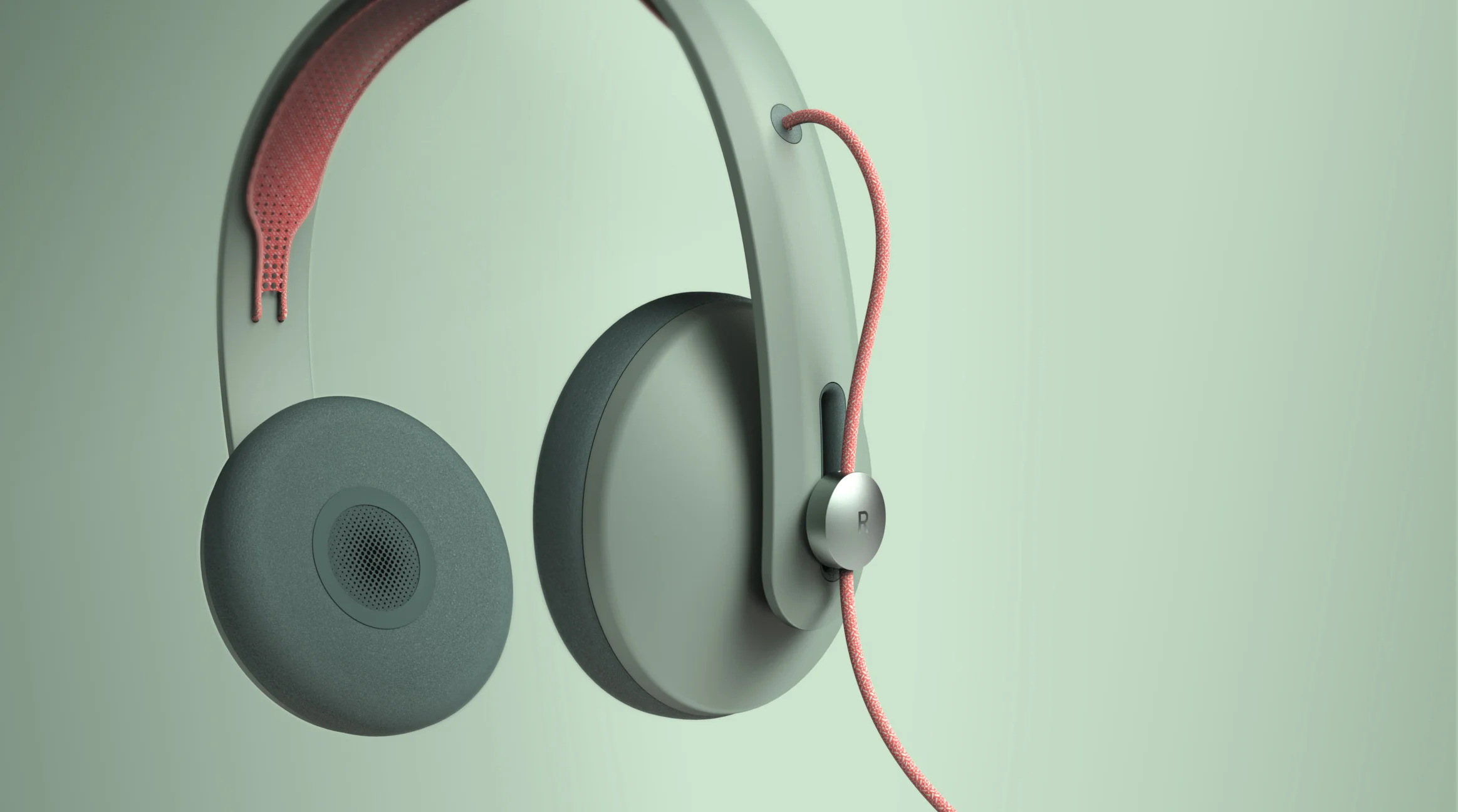 The Weft Headphones are an examination of the intersection of hard and soft materials. The fabric-sheathed cord passes into the headphone band and appears to diverge into the knit strap.